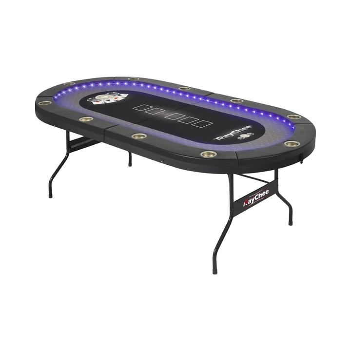 REAHOISY 10 플레이어 접이식 텍사스 홀덤 포커 테이블 LED 조명 2 USB 2 Type-c 포트 컵 홀더 패딩 레일 블랙 컬러